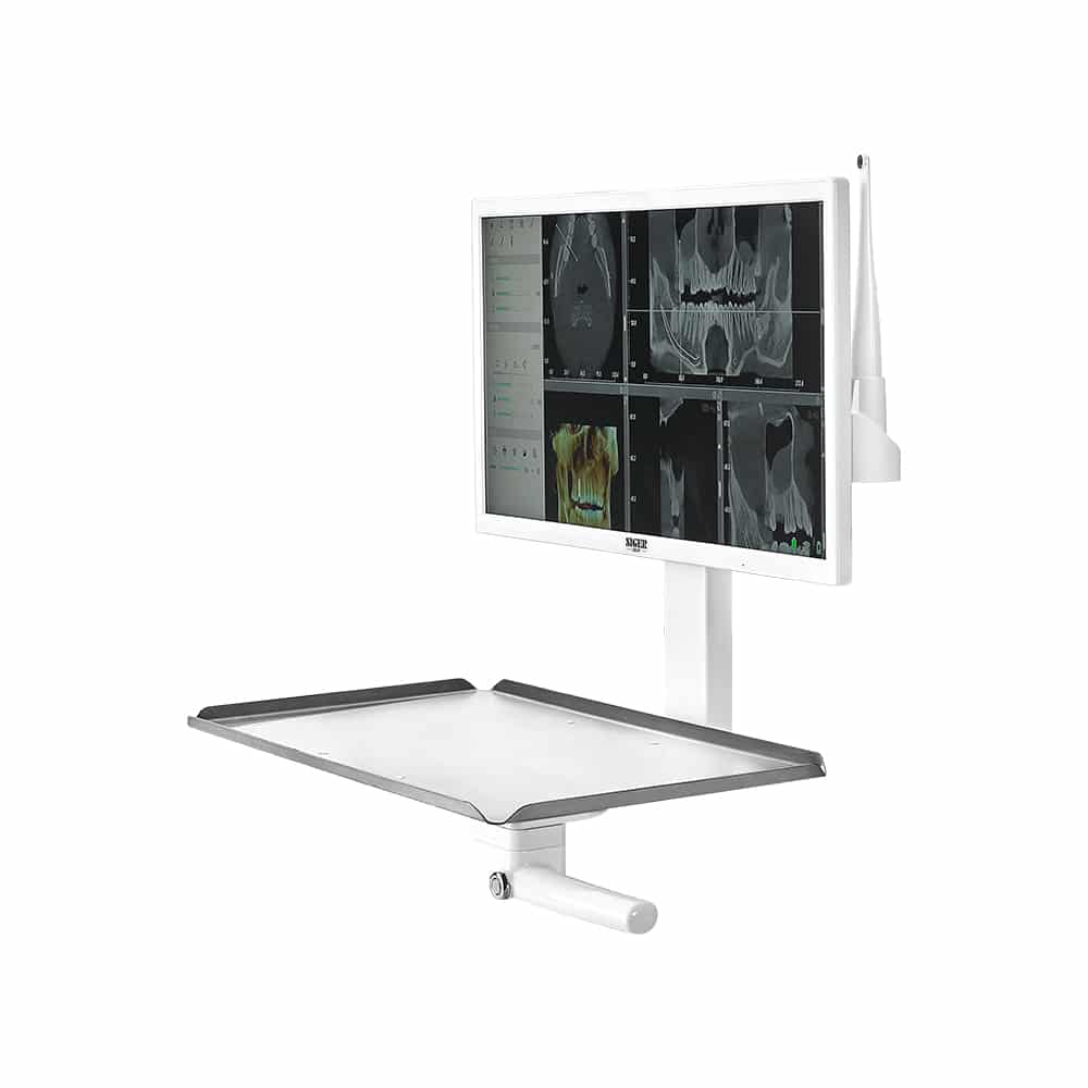 A multimédiás területen való frissítés érdekében a Siger S60 fogászati egység 21,5 „” monitorral van felszerelve, amely az eszköztartó tálcát tartó karhoz van rögzítve.